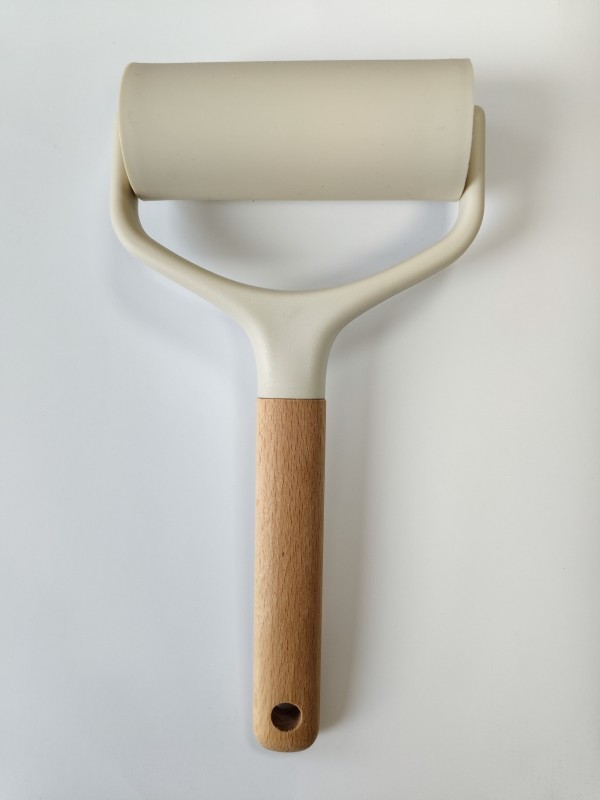 MATERIL: Solid Wood Handle, Silicone Surface + PP Inner Core (roller) Size: 22.5*10.5cm
